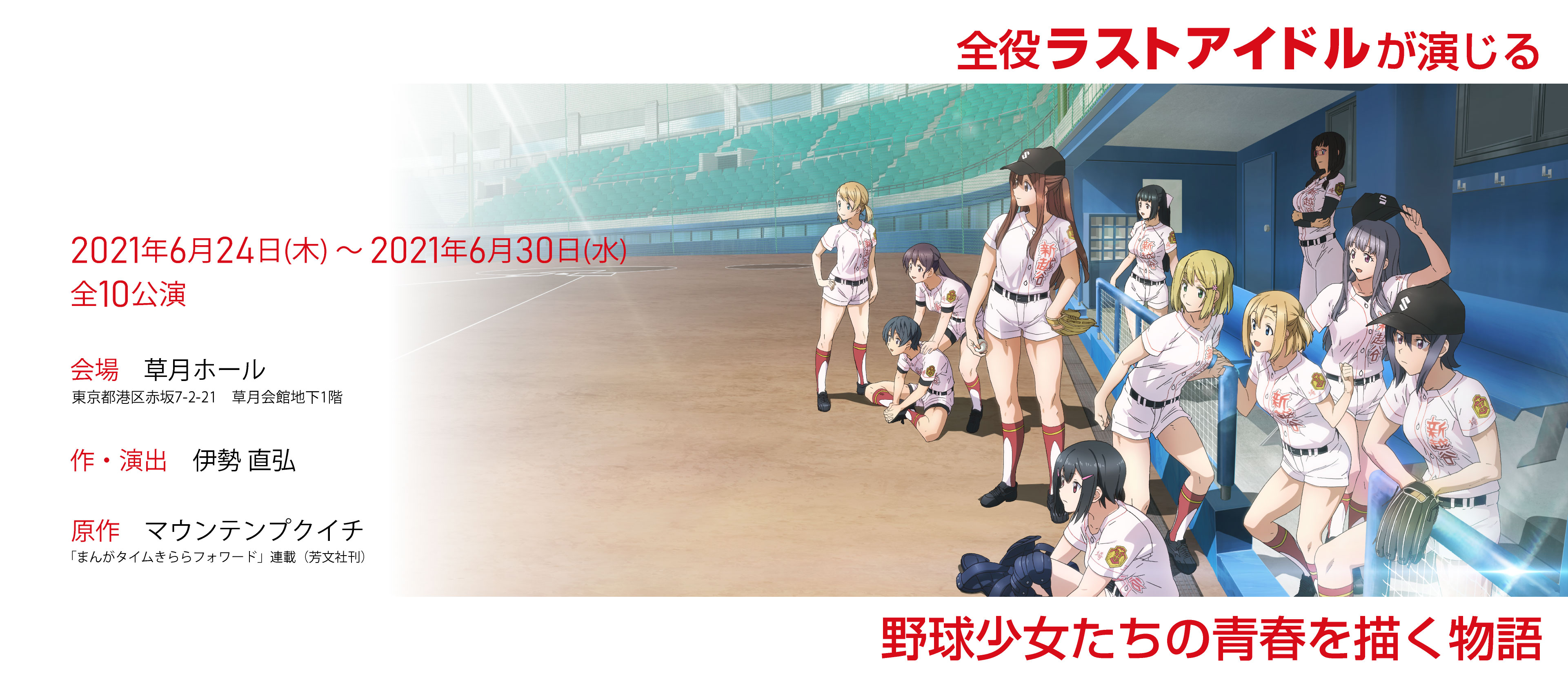 2021年6月、舞台『球詠』の上演が決定した。 原作は、マウンテンプクイチによる日本の漫画『球詠』。『まんがタイムきららフォワード』にて、2016年6月号より連載中である。 女子野球が女性らしいメジャーなスポーツとして認知されているという設定の現代日本を舞台に、埼玉県越谷市から全国高校野球大会への出場を目指す美少女たちの青春を描く。 『球詠』は2020年4月〜6月にAT-X、ABCテレビ、メ~テレ、TOKYO MX、KBC九州朝日放送、NCC長崎文化放送にてアニメが放送され、さらに現在も各種ストリーミングサイトで配信されている人気作である。 今回そのアニメ版を舞台化することが決定し、さらに全役を“ラストアイドル”が演じることが発表された。 “ラストアイドル”とは、2017年12月20日にCDデビュー。バトルと称されるオーディションシステム、高難度企画への挑戦を特徴とするアイドルグループ。 様々な挑戦を経験して来たラスアイメンバーがこの度、初のグループでの舞台出演となる。 公演は2021/6/24(木)〜2021/6/30(水)に草月ホールにて。お見逃しなく! |